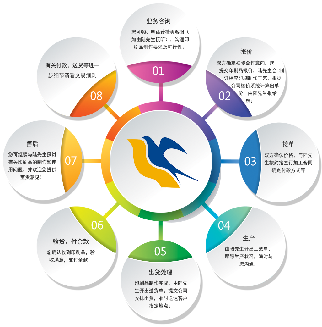 3、報(bào)價(jià):每批印刷品(即使是相同的印刷品)的數(shù)量、尺寸、用料及工藝的復(fù)雜程度不同都會(huì)影響單價(jià),因此公司客服會(huì)與您溝通所有與報(bào)價(jià)的相關(guān)因素,并提供降低成本、保證質(zhì)量的相關(guān)建議,然后才給您報(bào)出準(zhǔn)確合理的價(jià)格;